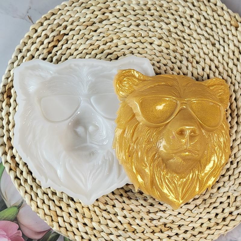 Moldes de fundición de resina hechos a mano para adornos decorativos DIY estilo Ins herramientas de escritorio de silicona gafas de sol molde de oso X0026