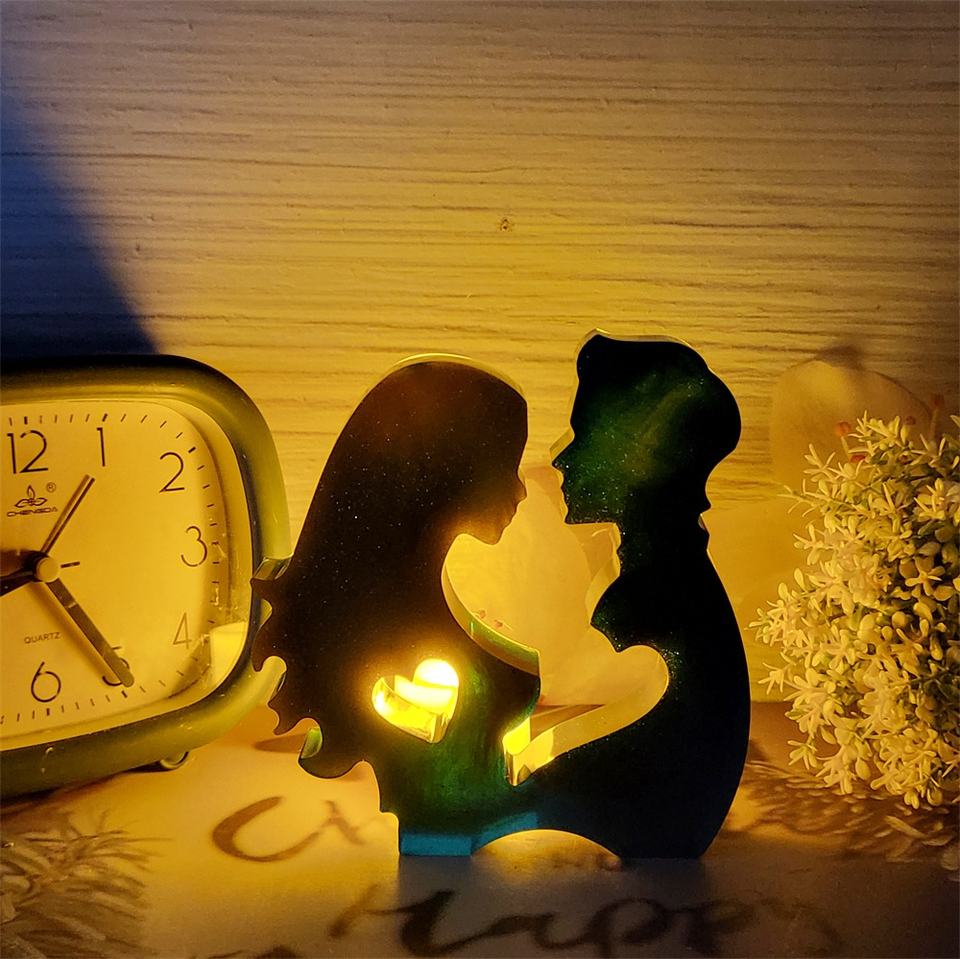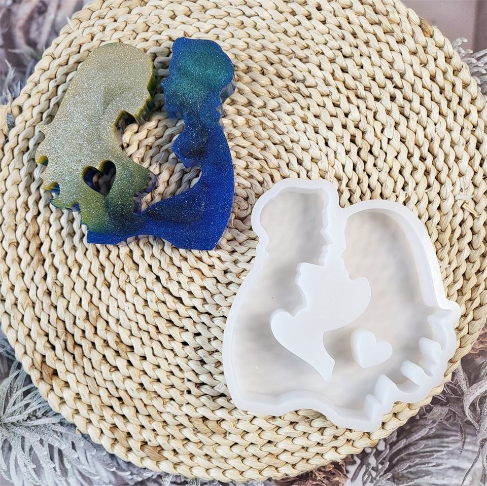 Moldes de fundición de resina hechos a mano para adornos decorativos DIY estilo Ins amantes de silicona besos figurita molde X0381