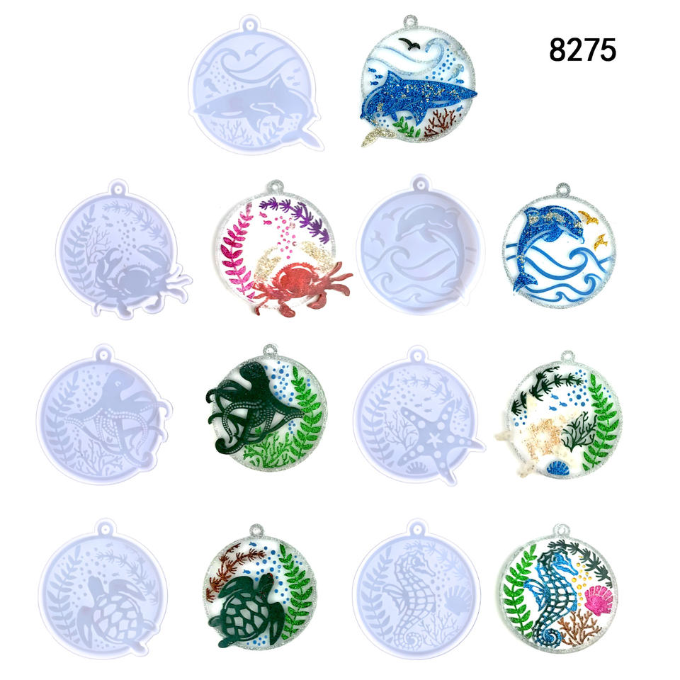 Moldes de fundición de resina hechos a mano para adornos decorativos DIY estilo Ins silicona criatura marina llavero molde 8275