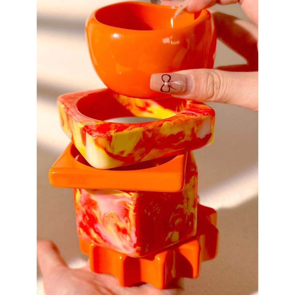 Juego de Brazaletes Artesanales de Resina para Mujer, Joyería Étnica Tradicional para Uso Diario y Ocasiones Especiales