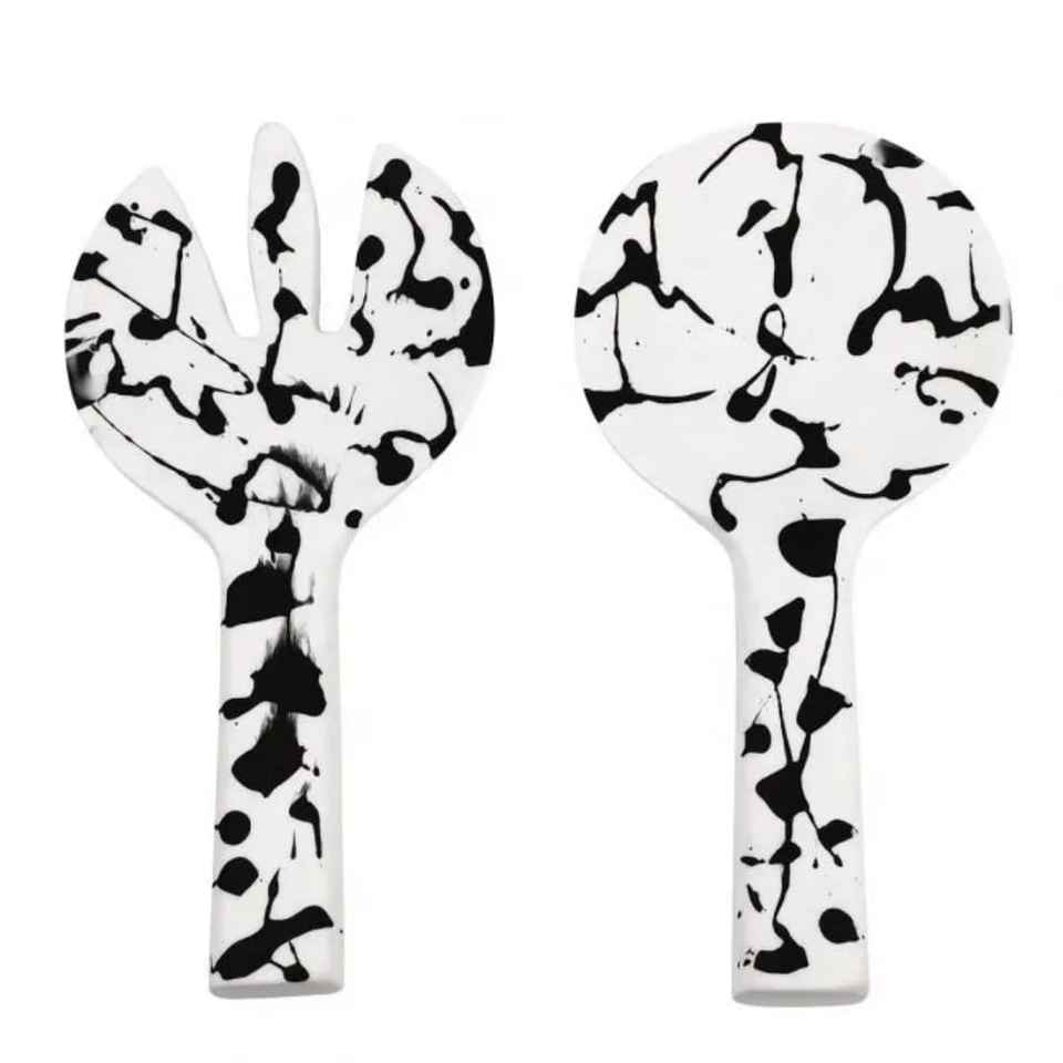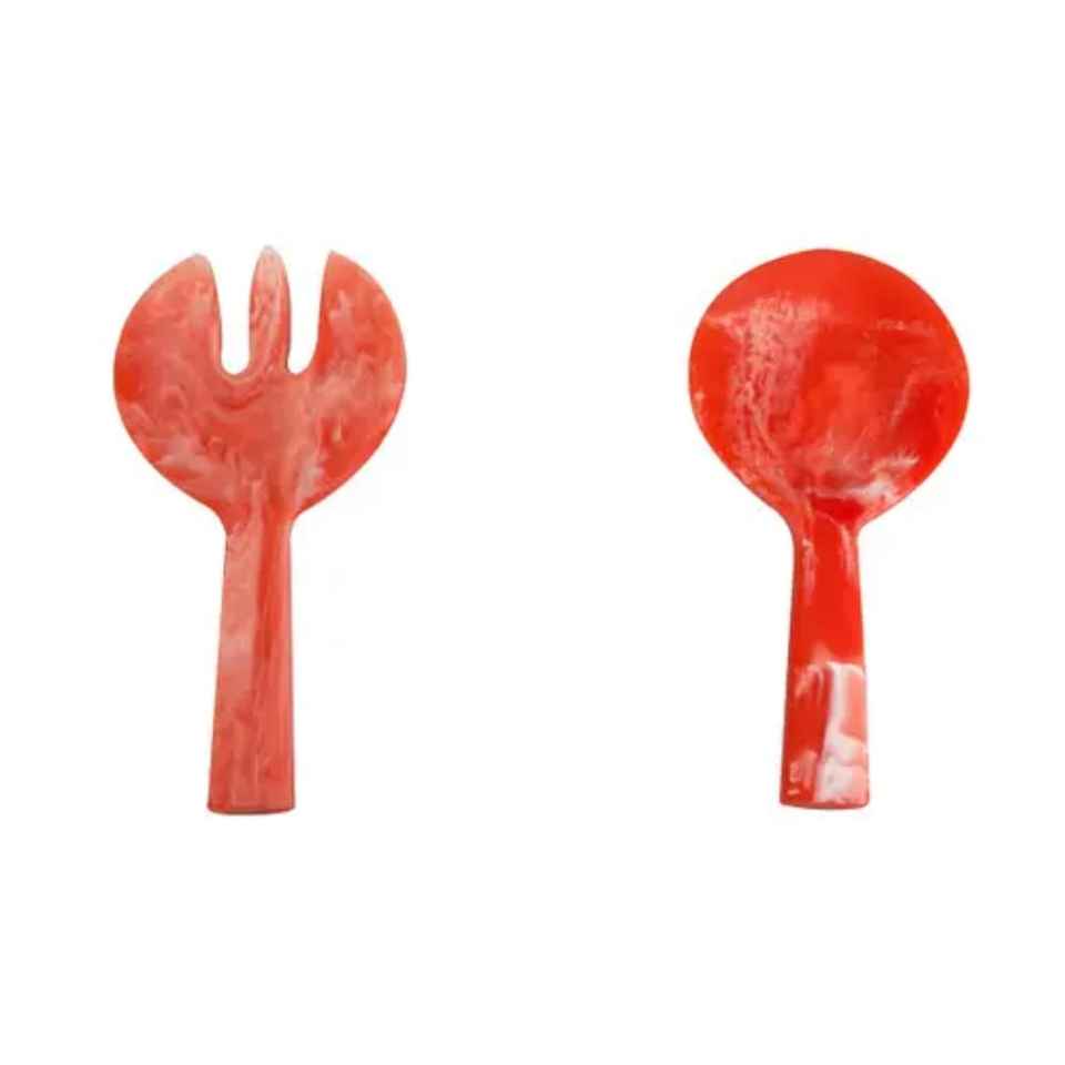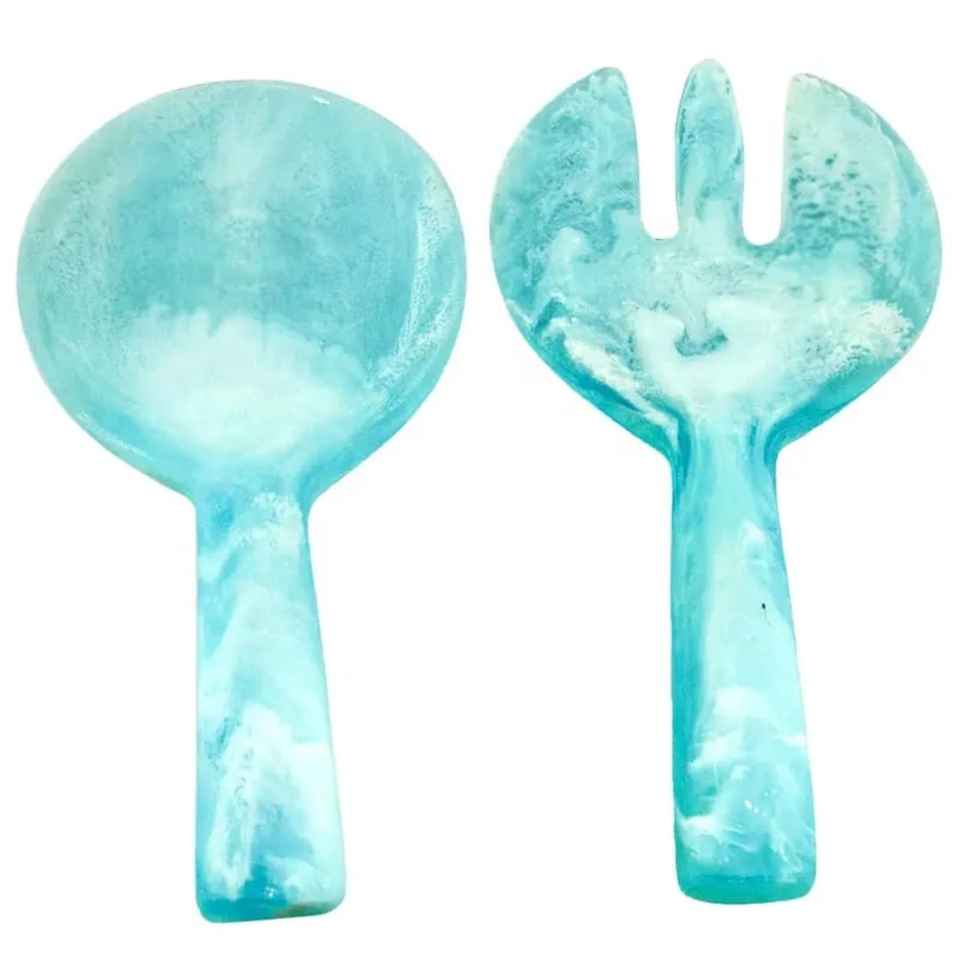 Juego de Cucharas para Ensalada de Resina Hechas a Mano, Mangos Largos, Diseño Artístico Brillante, Aptas para Lavavajillas, para Servir en el Hogar, Cocina, Comedor y Hotel