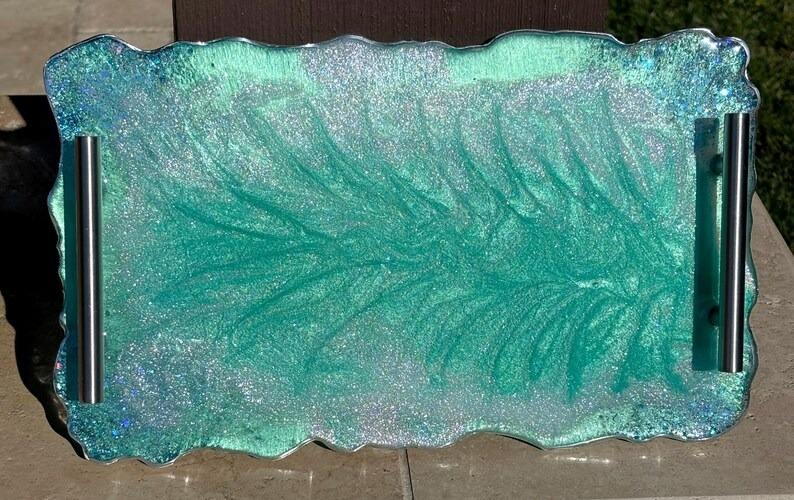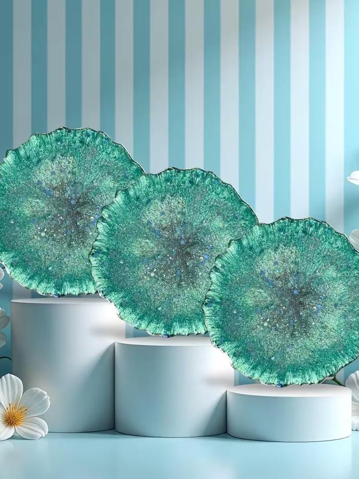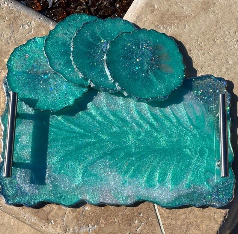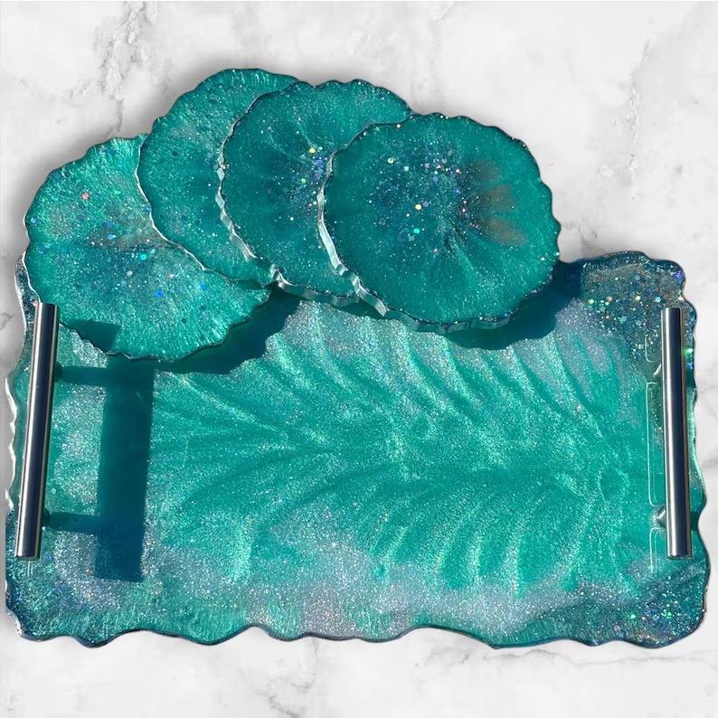 Bandeja de resina hecha a mano con posavasos, modelo de diseño, juego de bandejas para servir, para uso diario en el hogar, la cocina y la oficina, de la India.