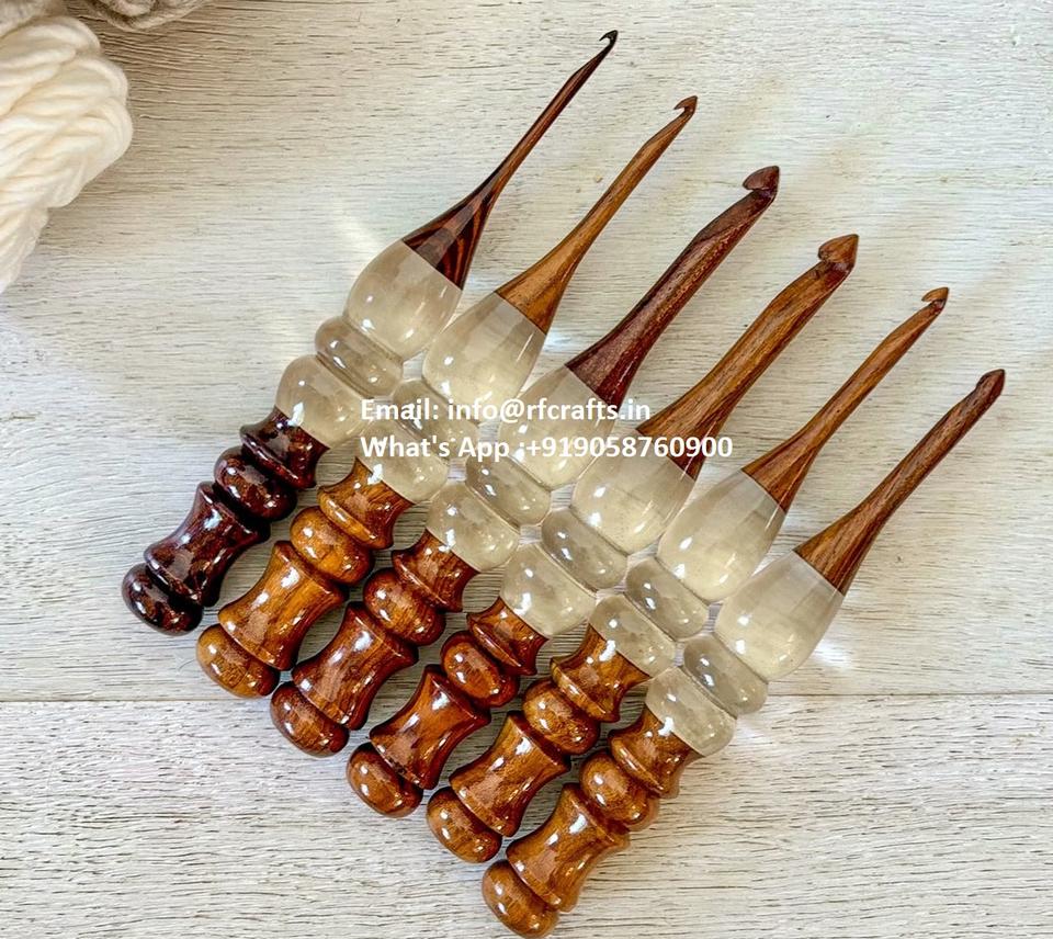 Agujas de ganchillo de madera de resina hechas a mano, agujas de tejer de lujo de alta calidad para sastrería, herramientas de costura