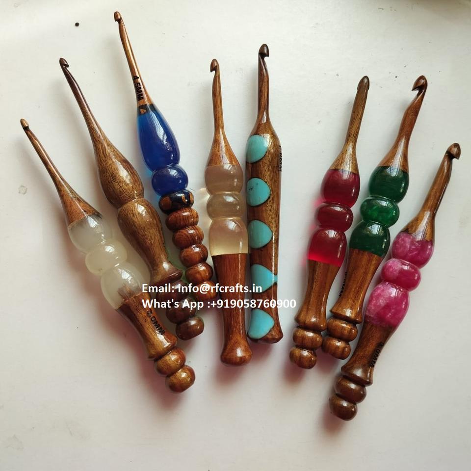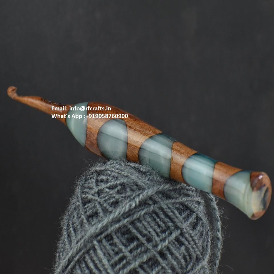 Gancho de ganchillo de madera de resina hecho a mano, agujas de tejer de lujo, herramientas de costura a medida, juego de tijeras de costura