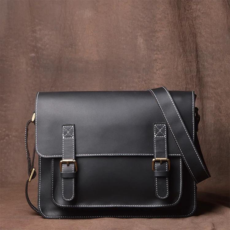 Bolso de Pecho Retro Ecológico Hecho a Mano, Bolso de Hombro Cruzado Multifuncional de Cuero Genuino para Hombre, Moderno y de Gran Tamaño