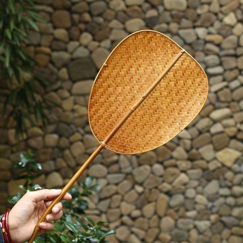 Abanico de Bambú Hecho a Mano Estilo Chino Retro, Abanico Ecológico con Rejilla Verde y Técnica Pintada para Refrescarse en Verano, Totalmente Hecho a Mano