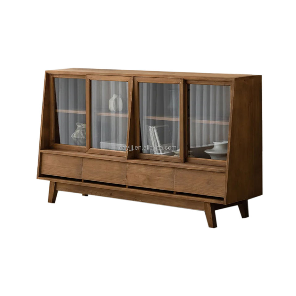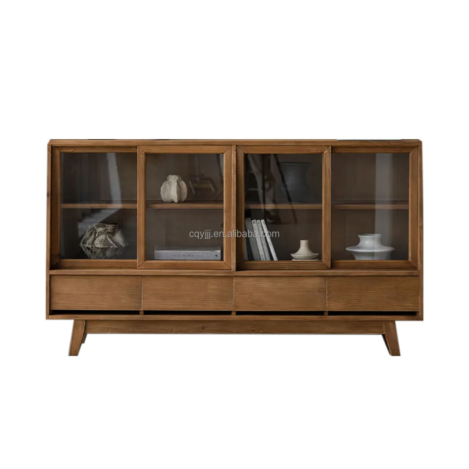 Librero de Madera Maciza Hecho a Mano, Estilo Retro, Personalizado, con Doble Puerta y 4 Cajones de Almacenamiento, Mueble Minimalista para Sala de Estar u Hotel