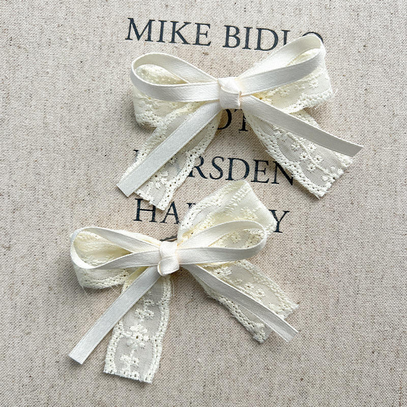 Pinza de Pelo Lateral para Mujer, Hecha a Mano, Retro, Fresca, Beige, con Encaje Bordado, Estilo Bohemio Pastoral, Tipo Pato