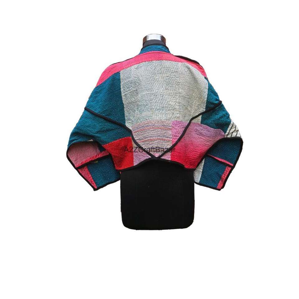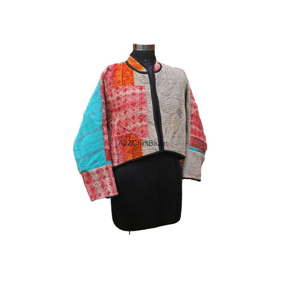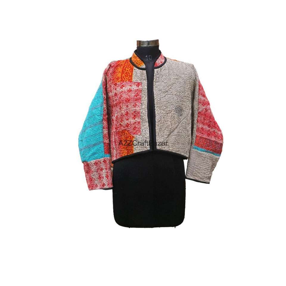 Chaqueta de Cuello Alto Kantha Vintage, Hecha a Mano, Reversible, Ecológica, Transpirable, de Secado Rápido, para Mujer, de Algodón Puro, Tejida, con Botones, para Invierno