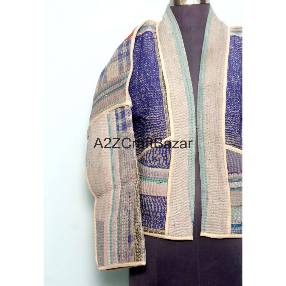Chaqueta de Cuello Alto con Botones, Tejida a Mano, Reversible, Ecológica, Transpirable, de Secado Rápido, de Algodón, Estilo Vintage Kantha, para Mujer, Primavera Verano