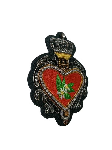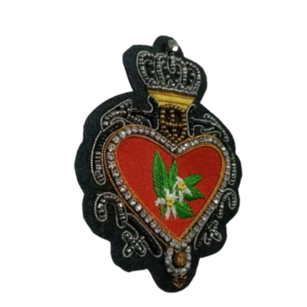 Parche Rectangular Hecho a Mano de Fieltro Ecológico con Pedrería y Cuentas, Diseño de Sagrado Corazón con Corona, para Ropa y Regalos