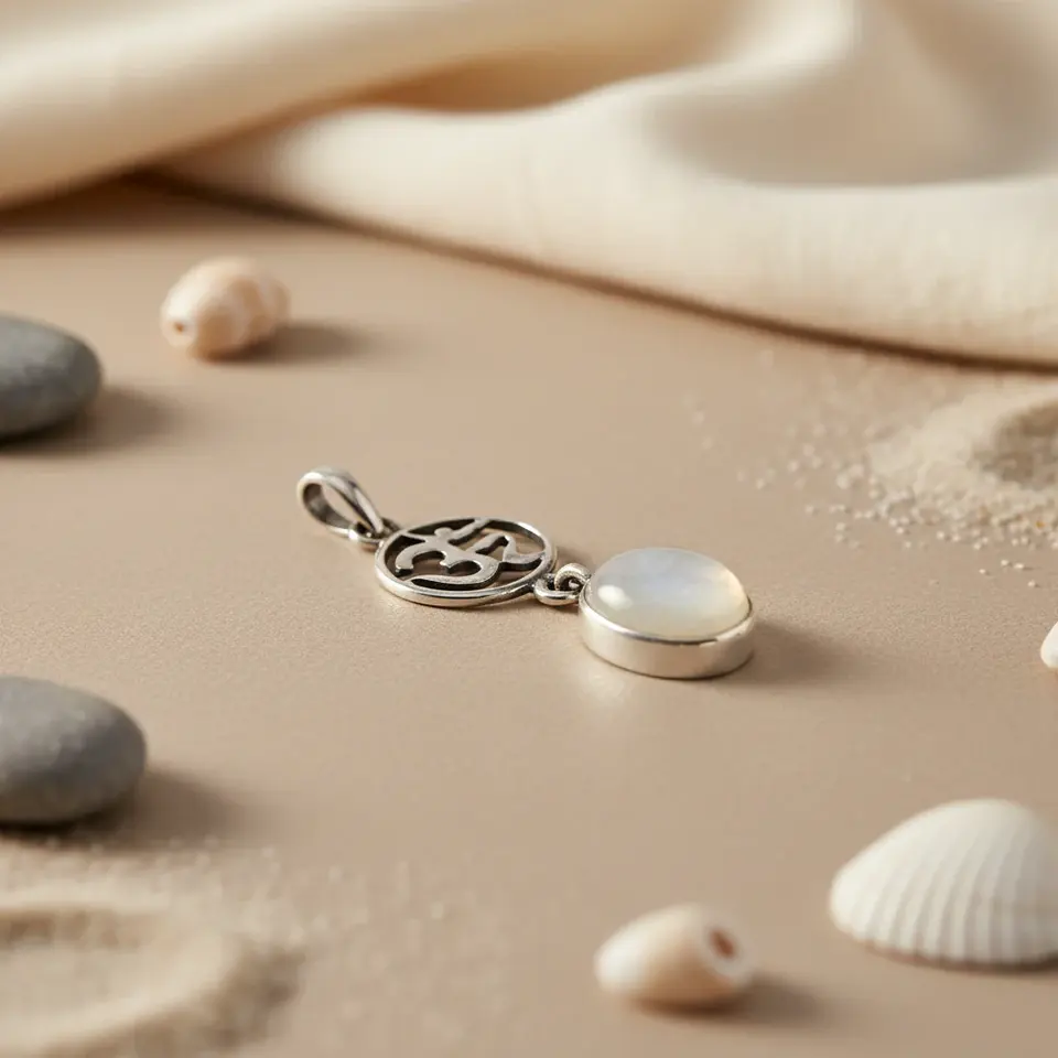 Colgante de Plata 925 con Baño de Rodio y Oro Rosa, con Piedra Lunar y Símbolo de Om, Hecho a Mano, para Mujer - Joyería Espiritual