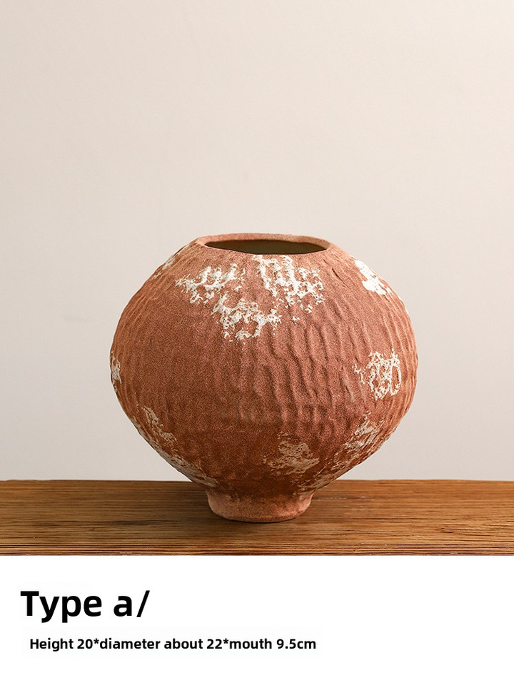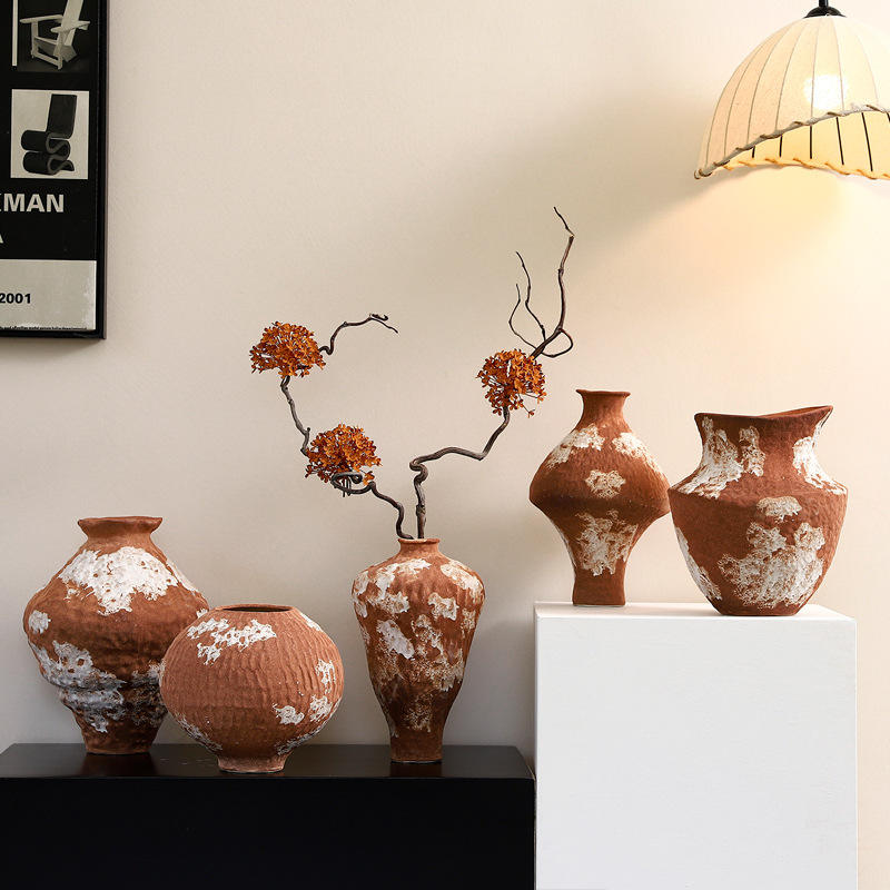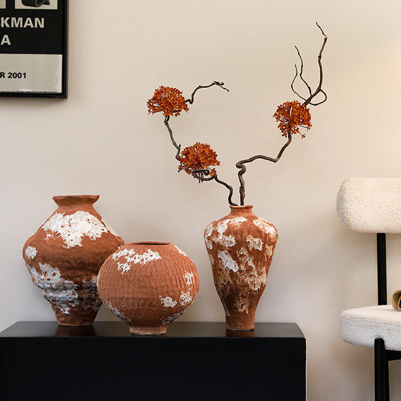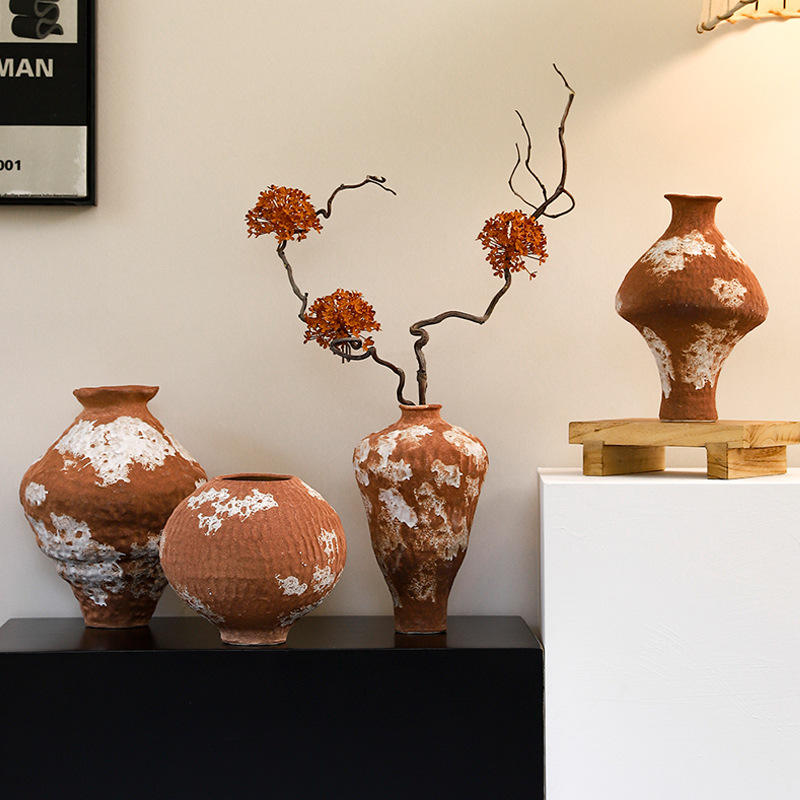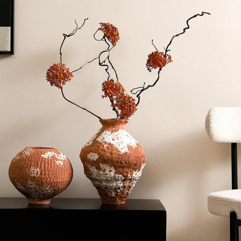 Jarrón de Cerámica Rústica Hecho a Mano con Acabado Glaseado para Mesa, con Arreglo Floral, Estilo Zen Tranquilo, Decoración Antigua con Ramas Secas
