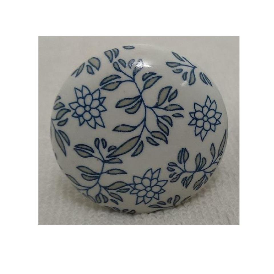 Perillas de cerámica hechas a mano con patrón Floral azul y blanco para armario, manijas de puerta de armario de cocina para decoración del hogar