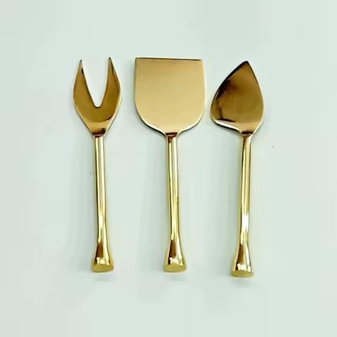 Juegos de cuchillos para queso chapados en oro de Metal con mango redondo hecho a mano para uso en restaurantes y hoteles juegos de esparcidor de mantequilla