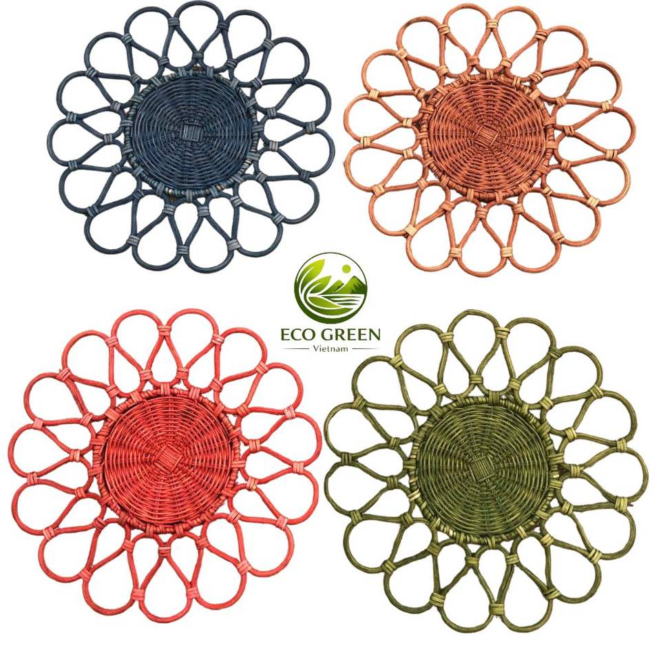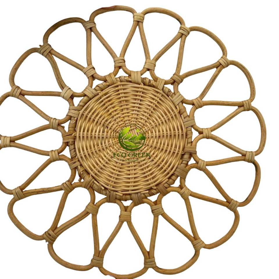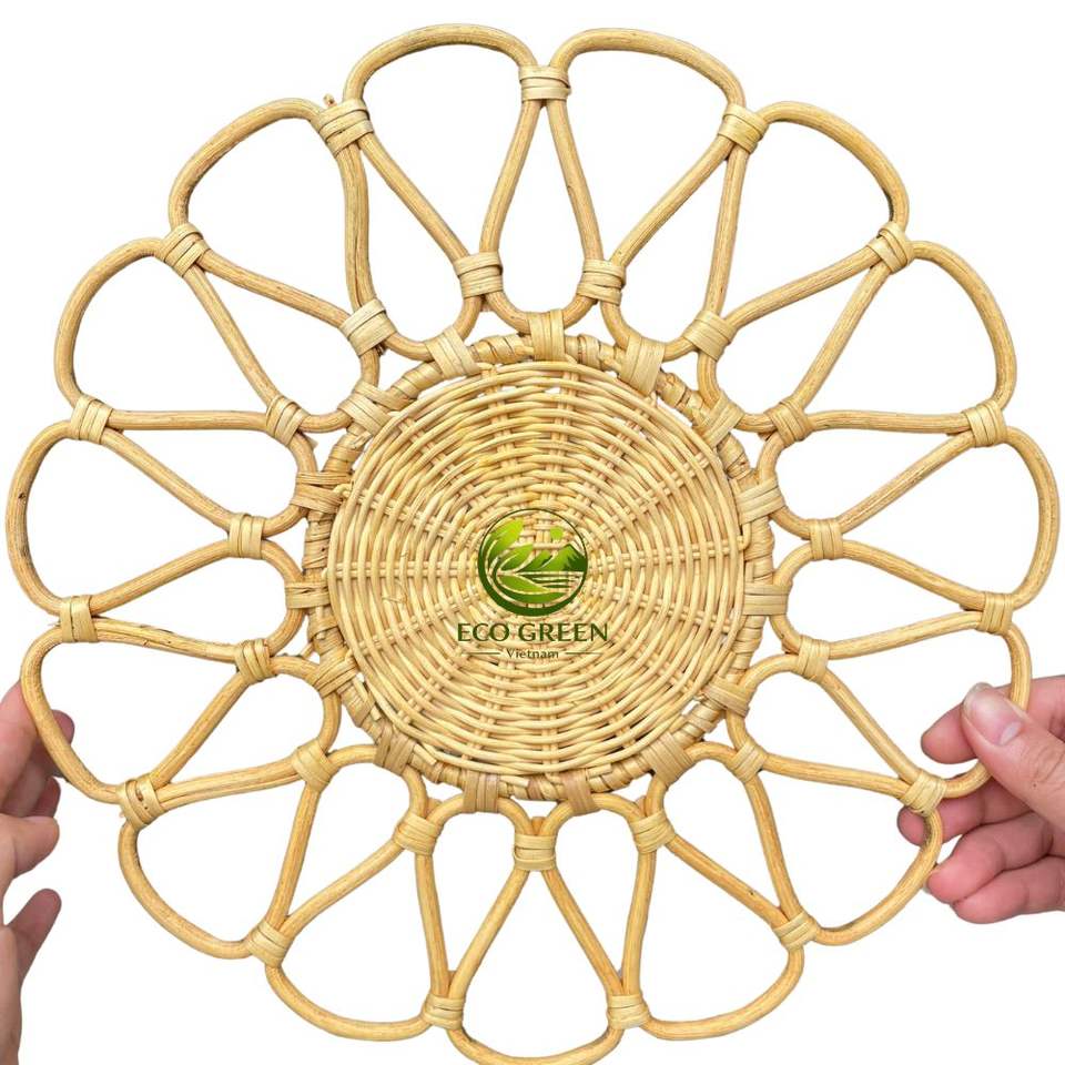 Juego de Manteles Individuales Redondos de Ratán Hechos a Mano para Decoración de Pared, Cesta Colgante de Paja Tejida Estilo Boho, Bandeja, Manteles Individuales de Mesa Rústicos, Posavasos Resistentes al Calor