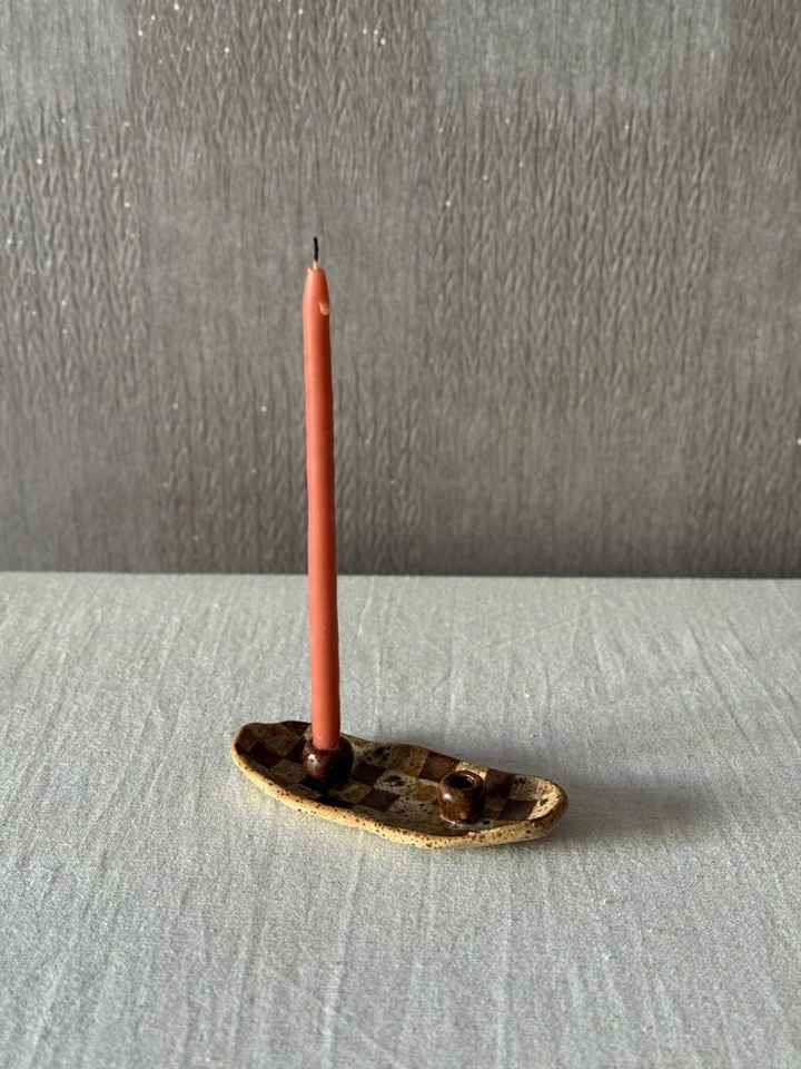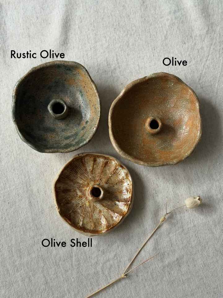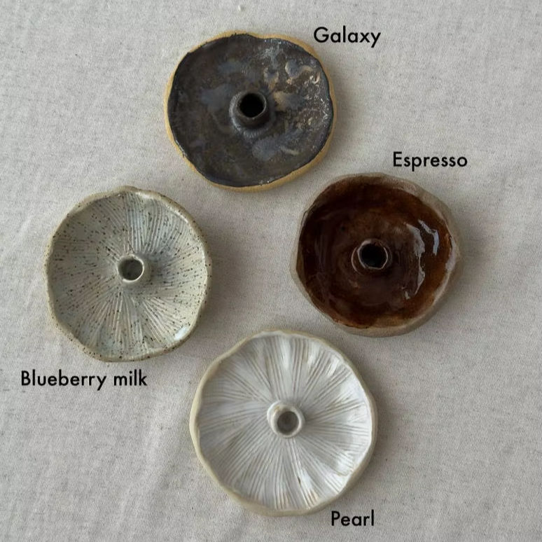 Portavelas de cerámica redondo a rayas hecho a mano para mesa en decoración del hogar, restaurantes y rituales religiosos por UO INDIA.