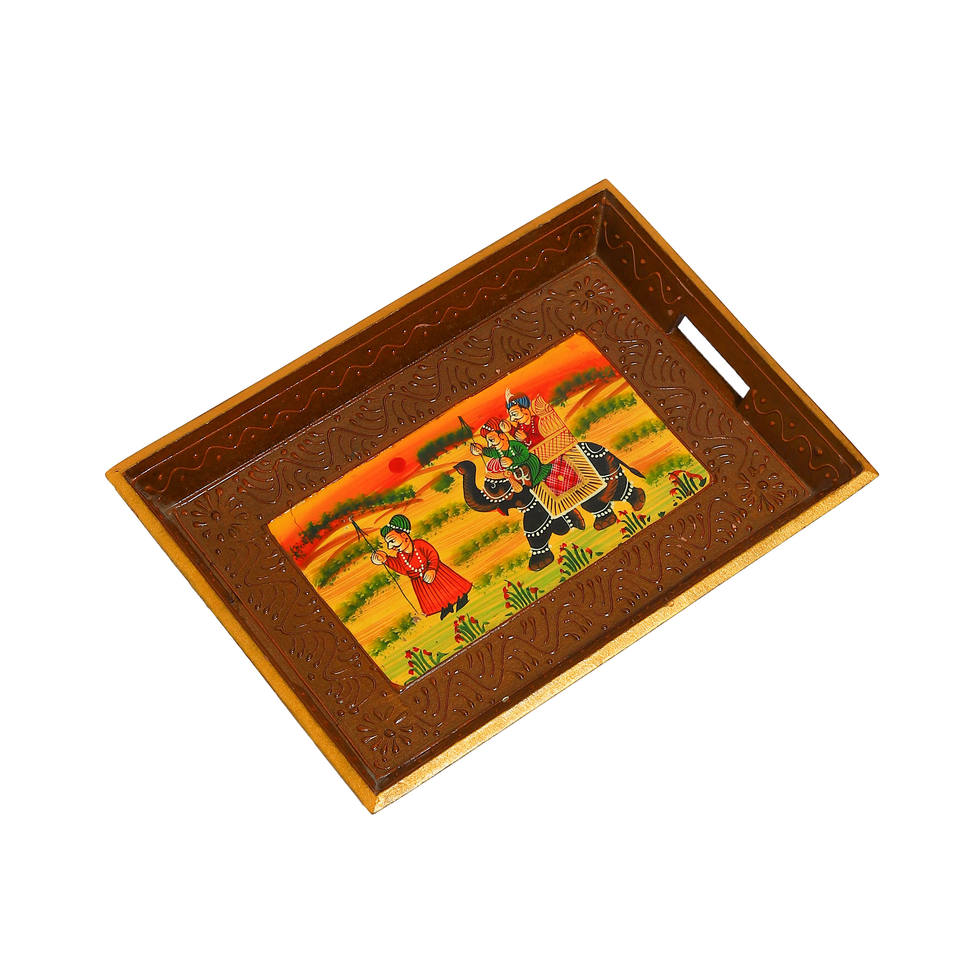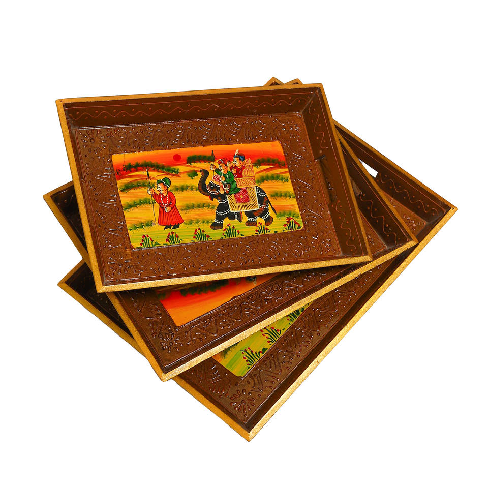 Juego de 3 bandejas de pintura Royal Rajasthani hechas a mano, la mezcla ilustrativa de colores vivos, detalles intrincados y la pintura a mano