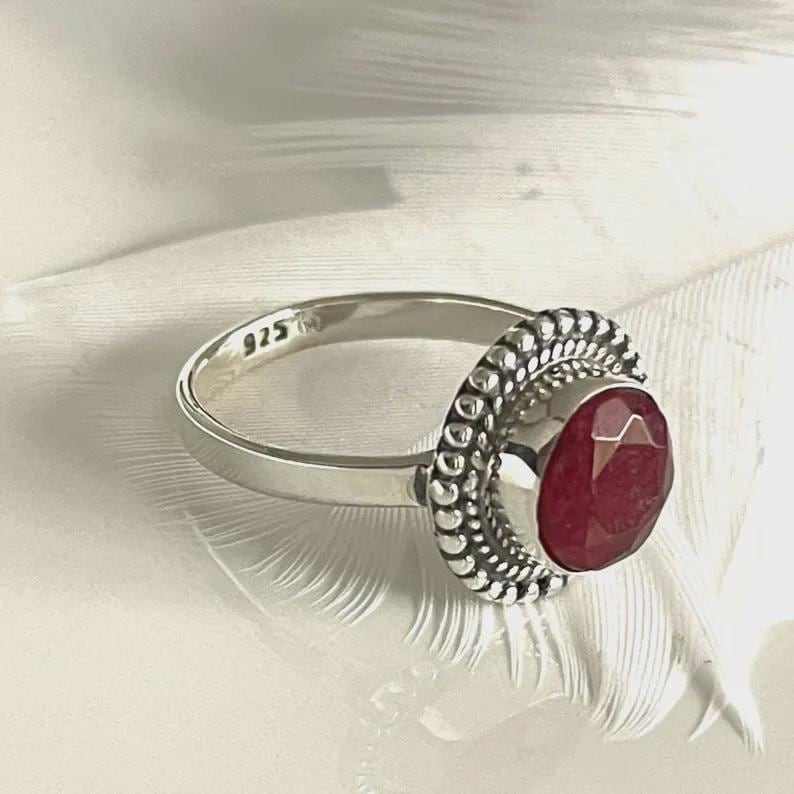Palabra clave:Anillo de rubí brillante de plata 925 con rubí