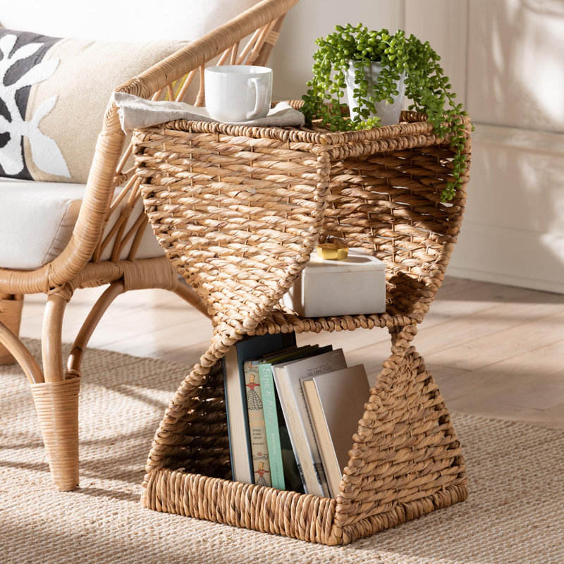 Mesa auxiliar de algas marinas de estilo rústico hecha a mano, estantería de suelo, mesas de consola
