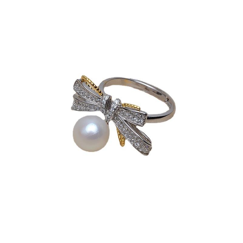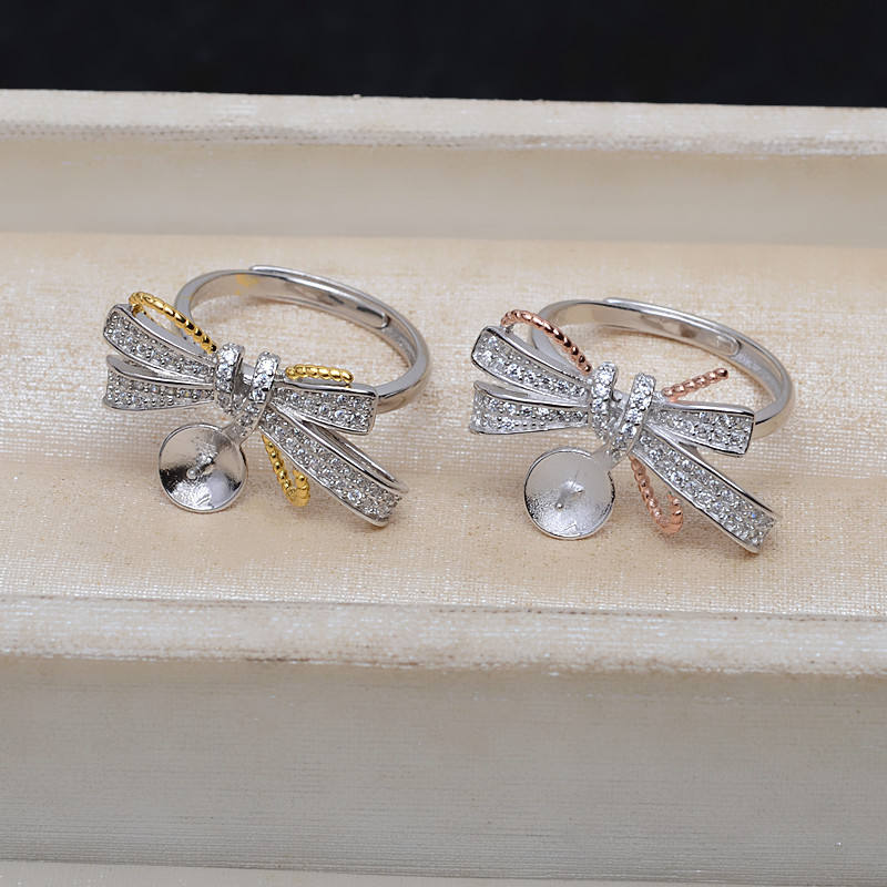 Anillo Abierto de Plata S925 Hecho a Mano con Lazo de Colores, Accesorios de Joyería DIY, Anillo Remodelado, Soporte para Perlas, Conjunto de Joyería de Moda 1333