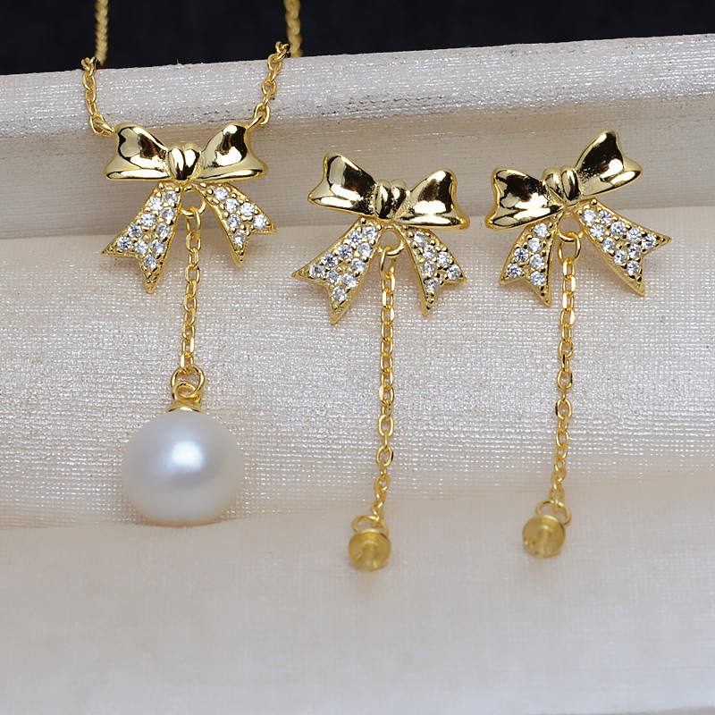 Juego de Pendientes de Plata de Ley S925 Hechos a Mano con Lazo, Accesorios de Joyería de Perlas DIY de 8-13 mm, 3983