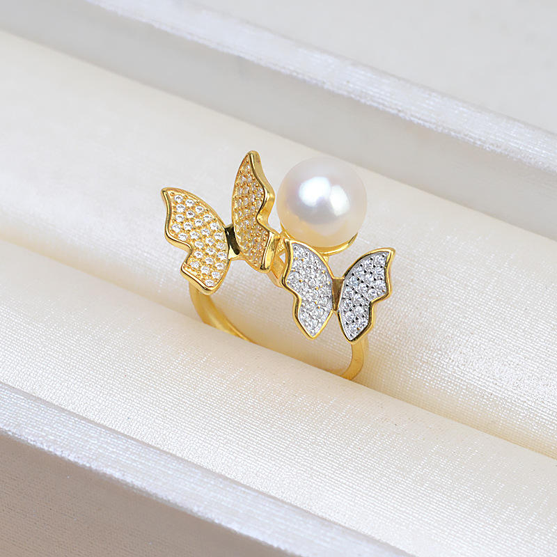 Anillos de Plata S925 Hechos a Mano con Dos Mariposas Abiertas, Soporte para Joyas de Perlas de 9-10 mm, Accesorio DIY 171