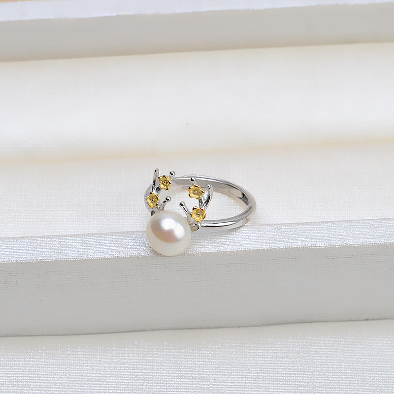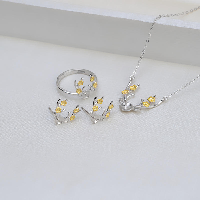 Conjunto de Joyería de Moda DIY, Collar de Clavícula con Colgante de Plata S925 Hecho a Mano, Anillo de Oreja con Diseño de Alce, Soporte de Perlas con Astas, 1338