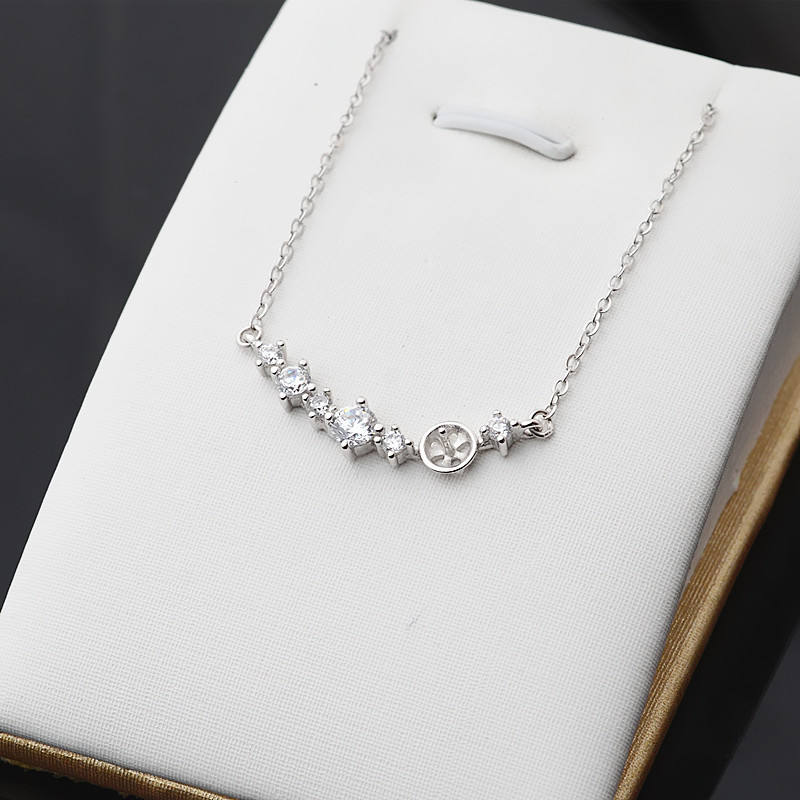 Conjunto de Collar con Colgante de Perla Pequeña de 6mm y Cadena Vacía de Plata S925 Hecha a Mano para Mujer, Material de Accesorios para DIY 378