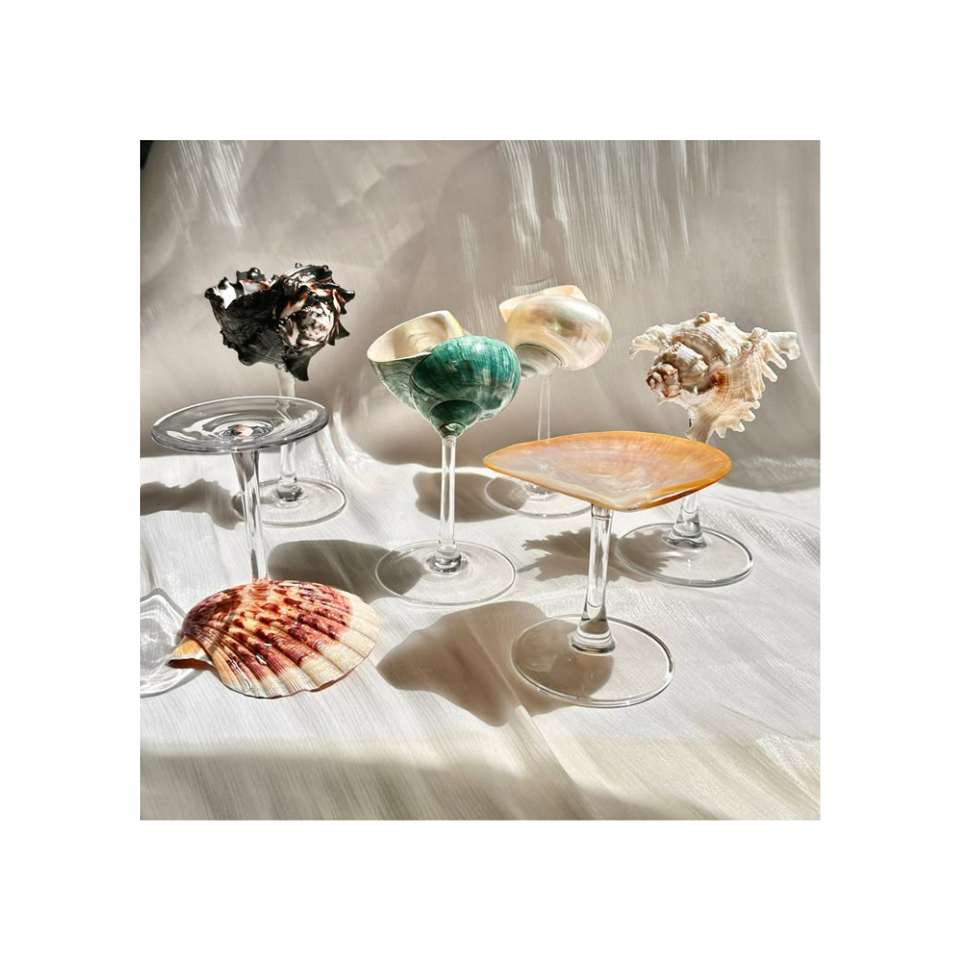 Cristalería de concha marina hecha a mano, copa de Martini ecológica para Barware y boda en la playa.