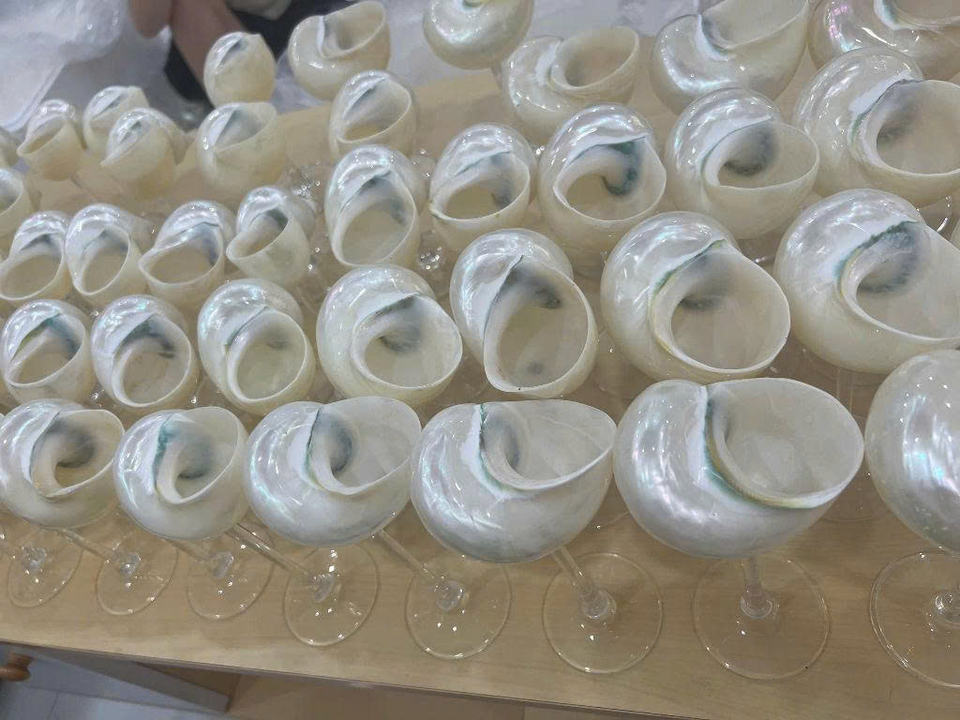 Copa de vino de concha marina hecha a mano, copa de concha Natural de Vietnam respetuosa con el medio ambiente para cóctel de lujo