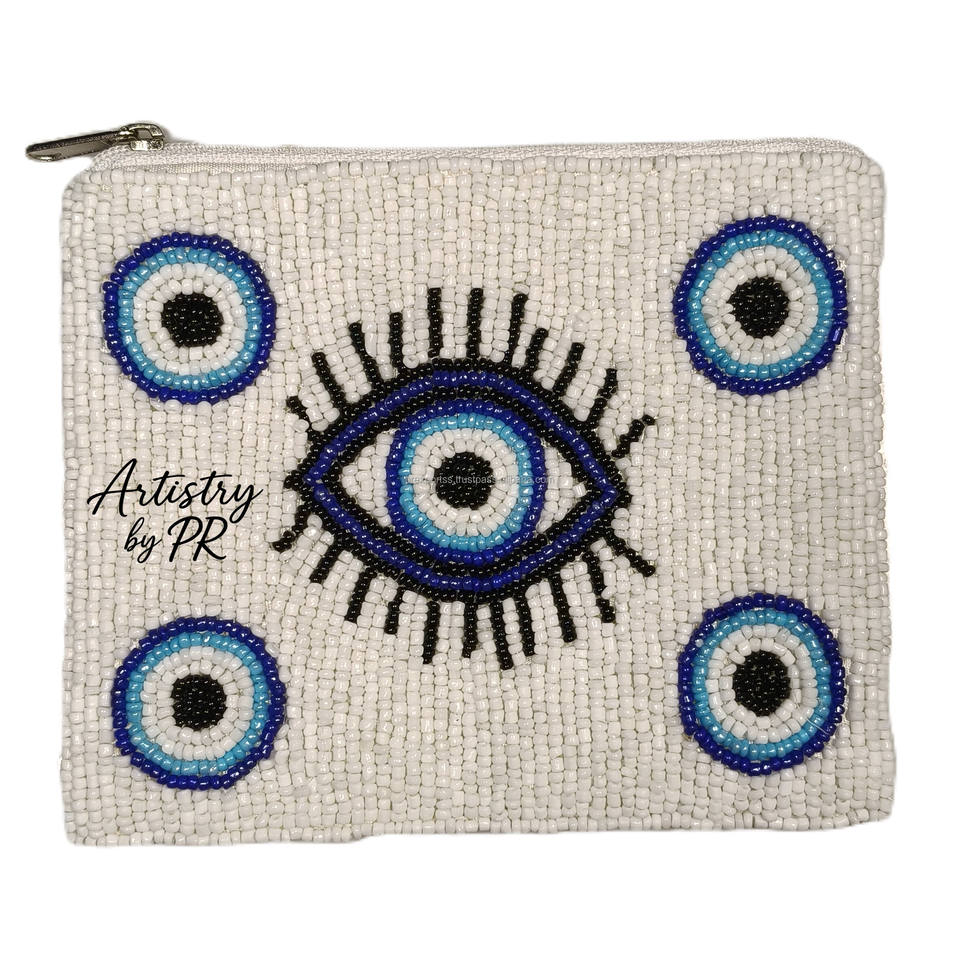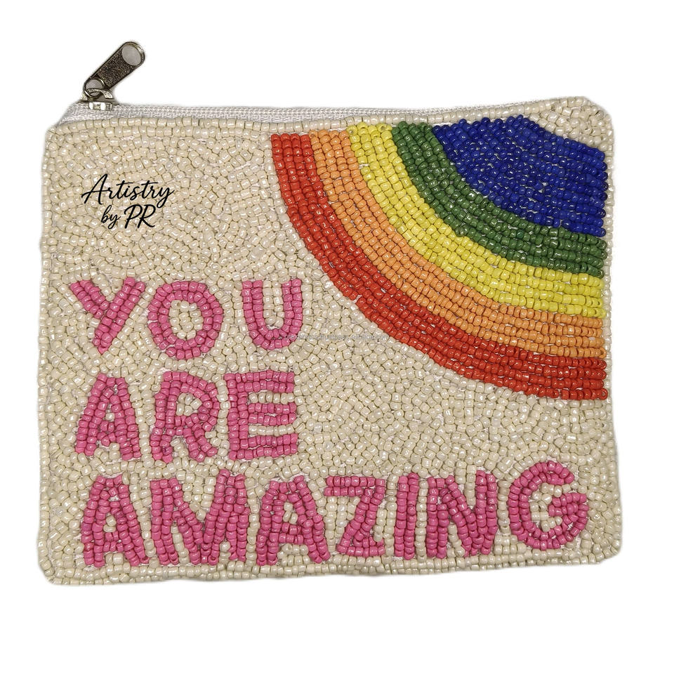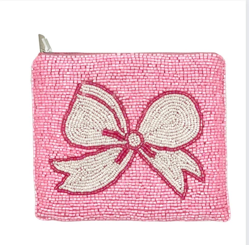 Monedero Mini de Lona Bordado a Mano con Cuentas, Bolsa con Cremallera Personalizada, Correa de Cadena Desmontable, Diseño de Lazo, Monedero con Cuentas Unisex