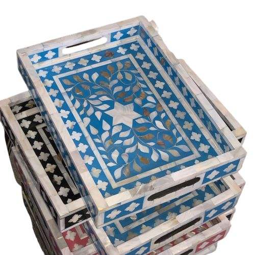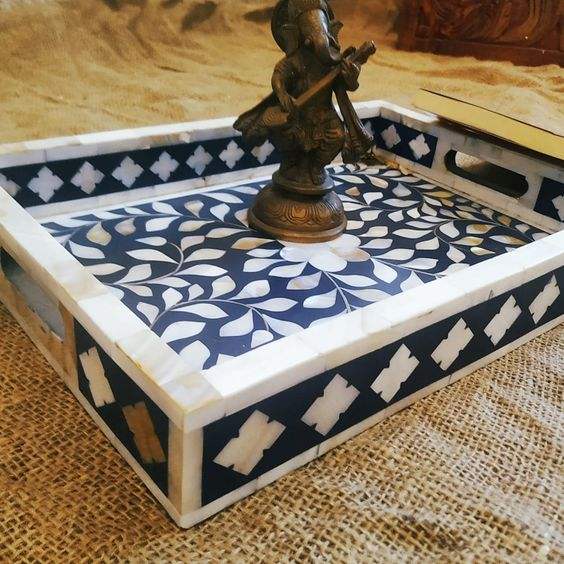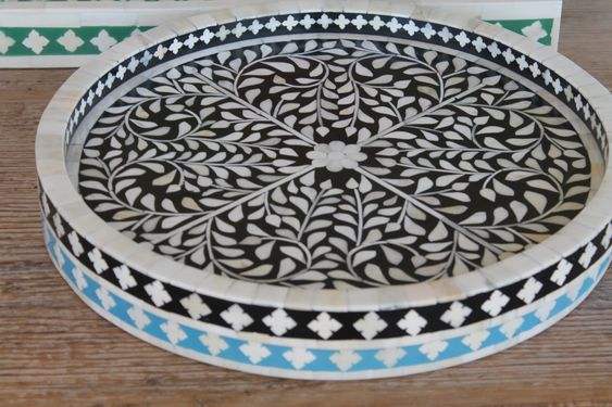 Bandeja de servicio hecha a mano con incrustaciones de hueso/incrustaciones de resina India más vendida hermosa bandeja de servicio con incrustaciones de hueso fabricante SCI