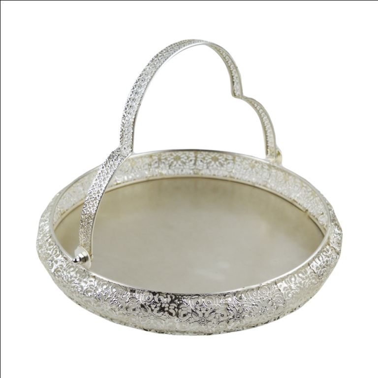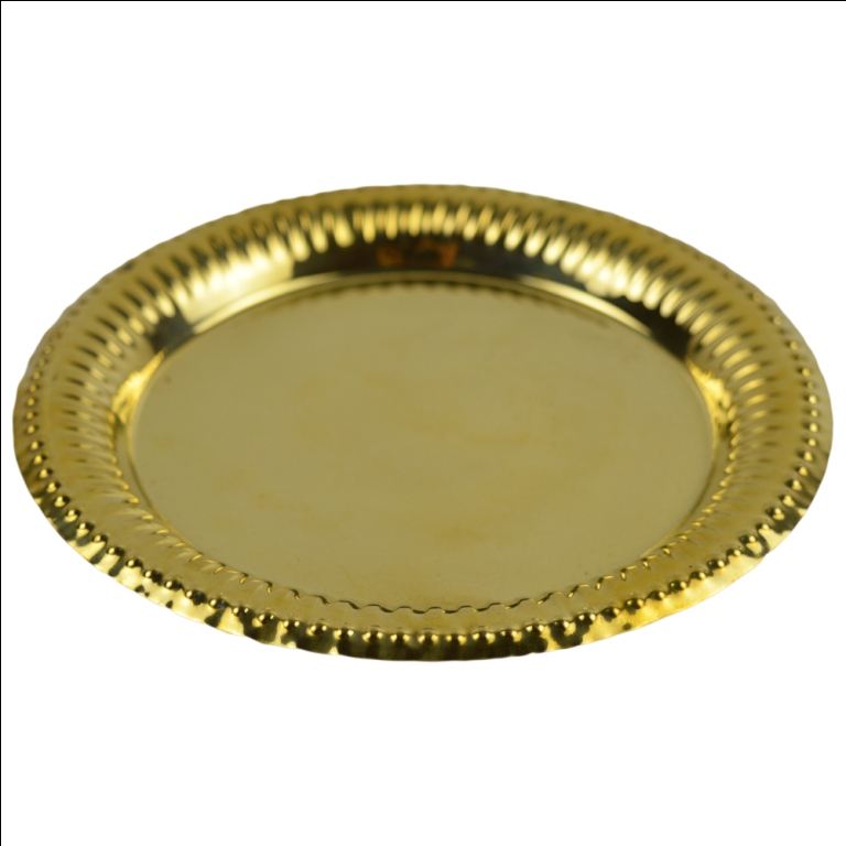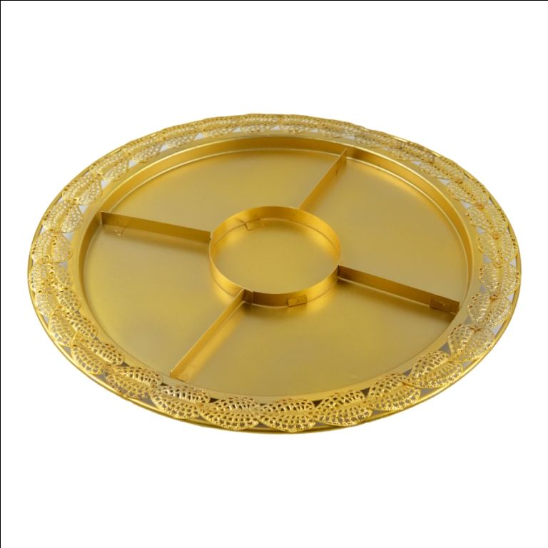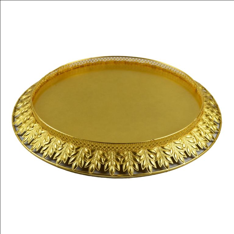 Bandeja de servicio hecha a mano, accesorios de cocina dorados de forma redonda, vajilla de mesa, precio al por mayor para diseño de restaurante de boda y hogar