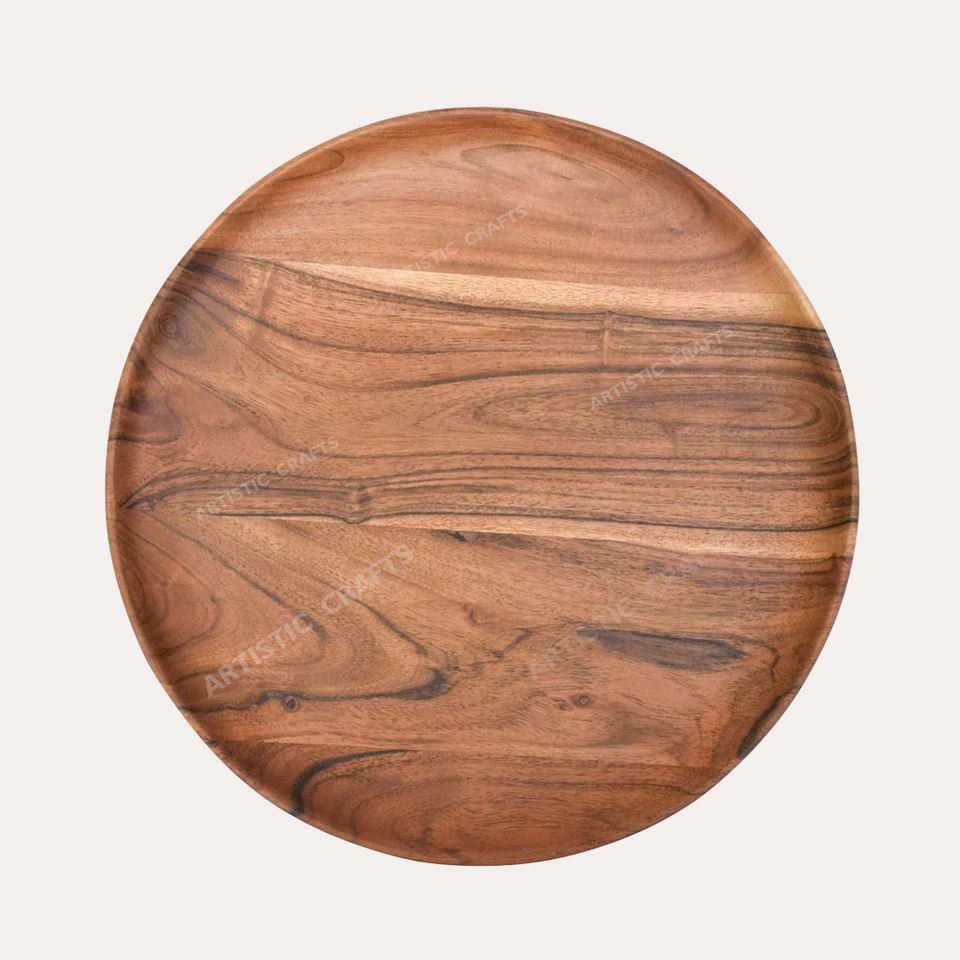 Placas de madera de forma redonda de aspecto simple hechas a mano con tamaños personalizados Tonos de madera Placas de cargador de madera de la India