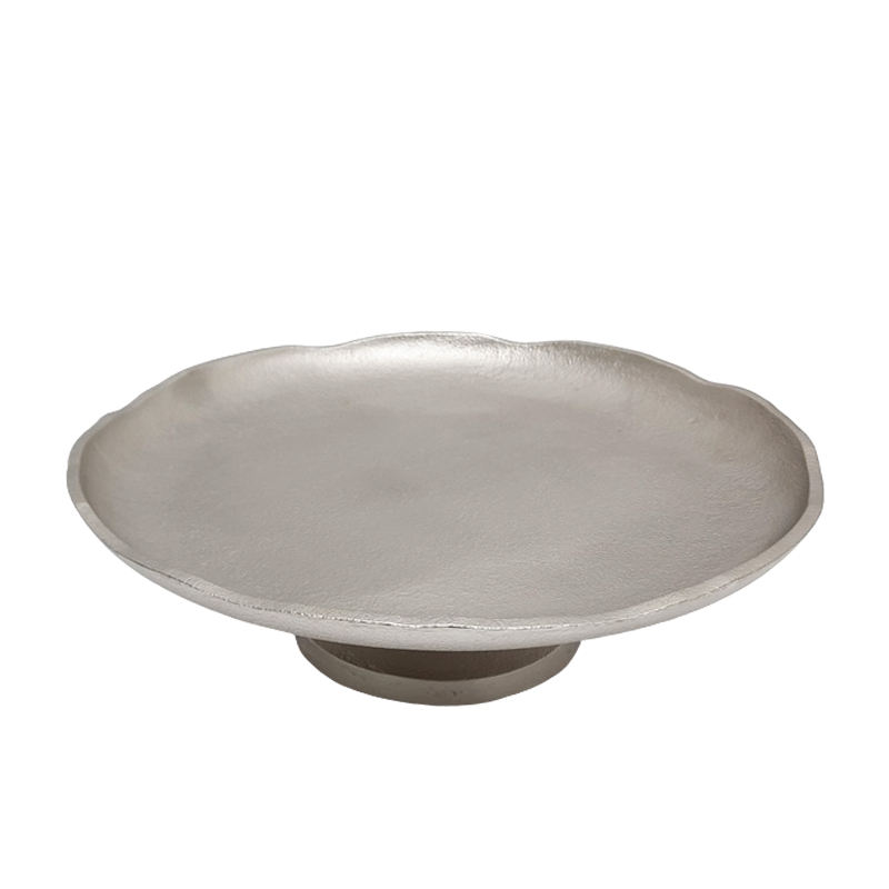 Soporte de pastel de metal hecho a mano de un solo nivel, acabado en níquel plateado, tamaño personalizado para el hogar y las fiestas de boda, decoración de mesa