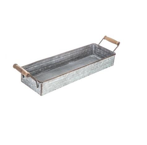 Bandeja de servicio de metal galvanizado rectangular pequeña hecha a mano