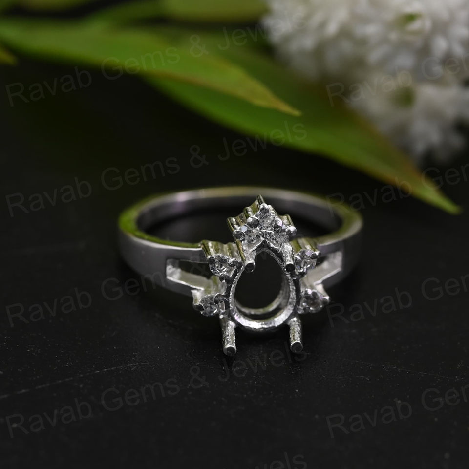 Base de Anillo Abierto de Plata de Ley 925 Hecha a Mano, Engaste de Garra de 4 Puntas para Zirconia de 6x8mm, para Joyería de Resina DIY