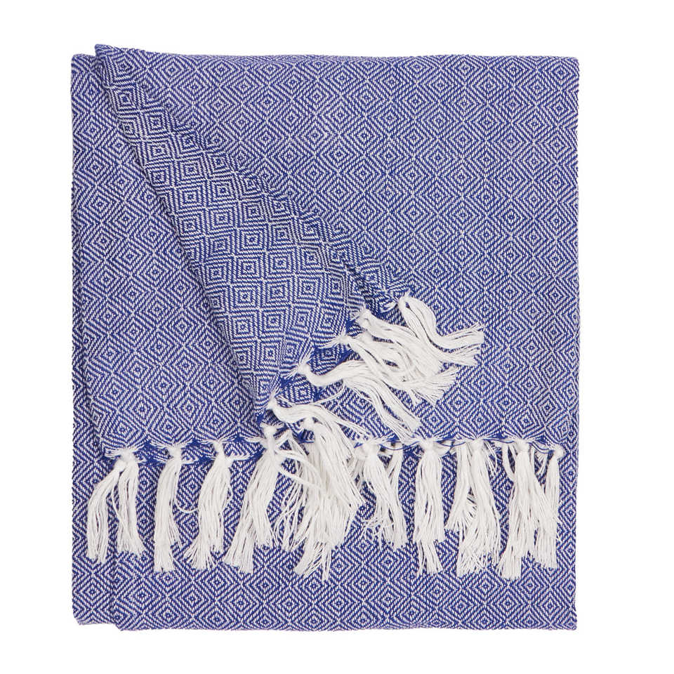 Manta Decorativa de Algodón 100% Tejida con Diseño de Diamantes y Flecos, Manta de Sofá con Diseño Geométrico, Manta Boho Decorativa de Algodón
