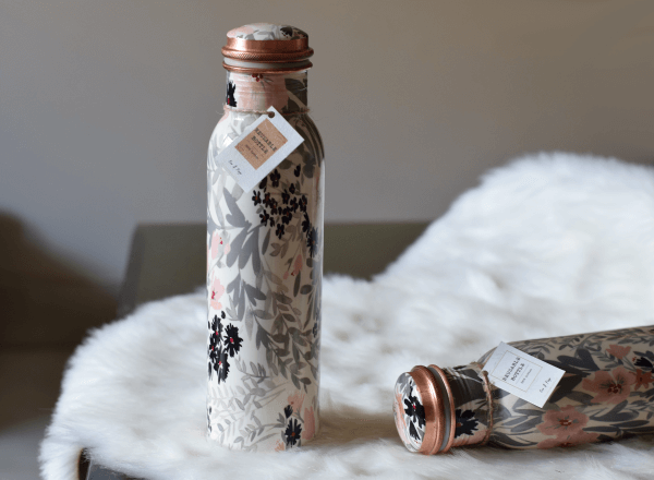 Botellas de agua de cobre sólido hechas a mano con diseño floral para beber estilo clásico para fiestas vasos y accesorios