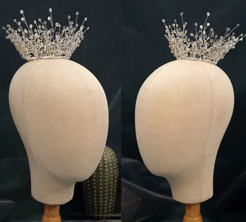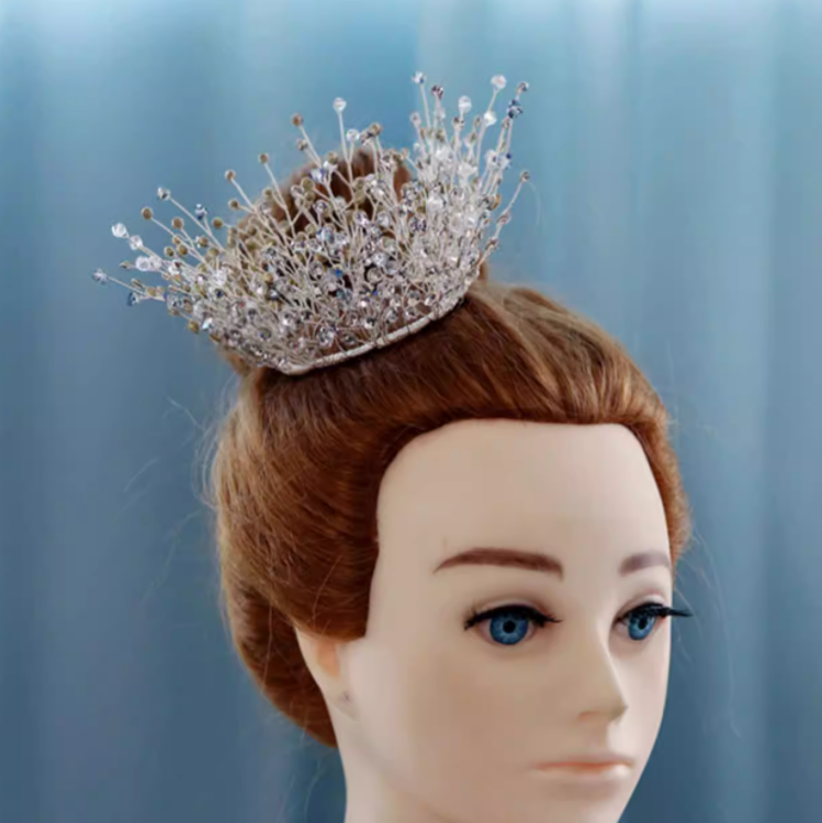 Tiara de Corona Redonda de Cristal Brillante Hecha a Mano con Pedrería para Novia, Princesa, para Bodas y Fiestas