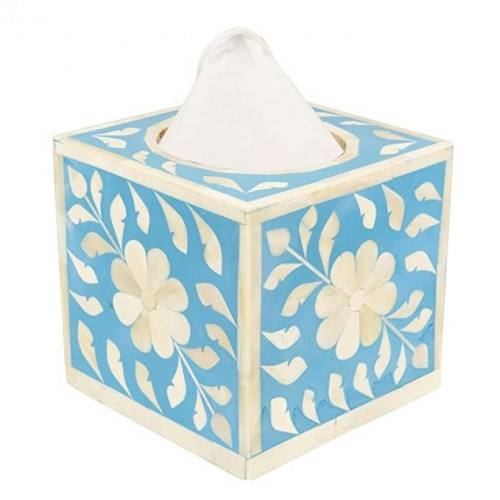 Servilletero cuadrado hecho a mano con incrustaciones de hueso, organizador de servilletas, contenedor, caja de pañuelos, servilletero para el hogar y la cocina