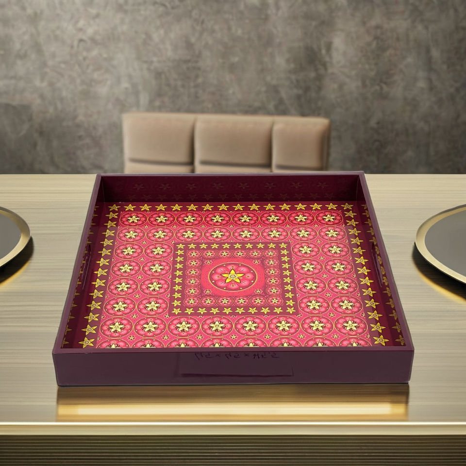 Bandeja de laca MDF cuadrada hecha a mano, Mandala brillante, patrón de estrella, bandeja decorativa sostenible para servir para el hogar, mesa de centro, regalo