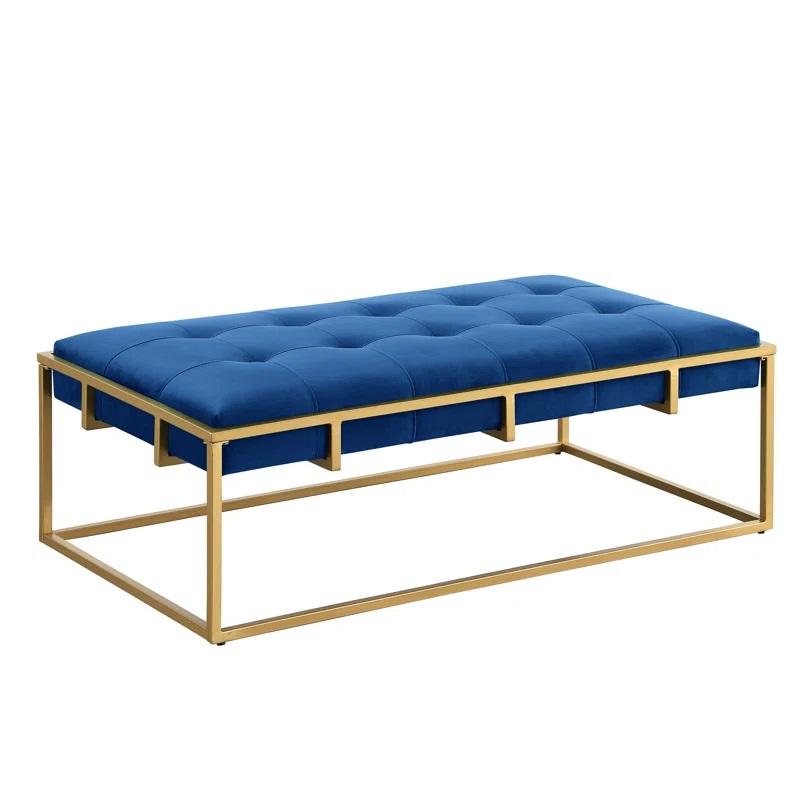 Taburete Otomano Cuadrado Hecho a Mano en Color Crema y Azul, Mueble para Sala de Estar, Taburete y Otomano Modernos para el Hogar