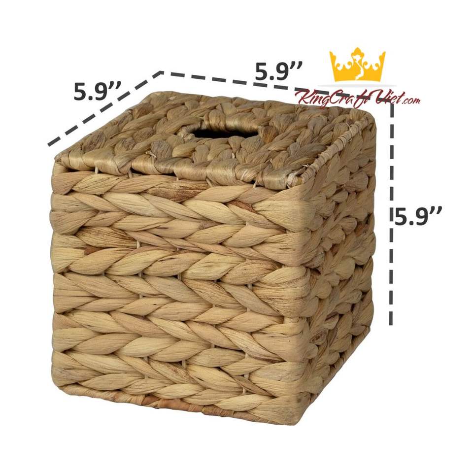 Caja de pañuelos cuadrada hecha a mano de jacinto de agua para almacenamiento de servilletas, cocina, baño, hotel, restaurante, Vietnam KING CRAFT VIET