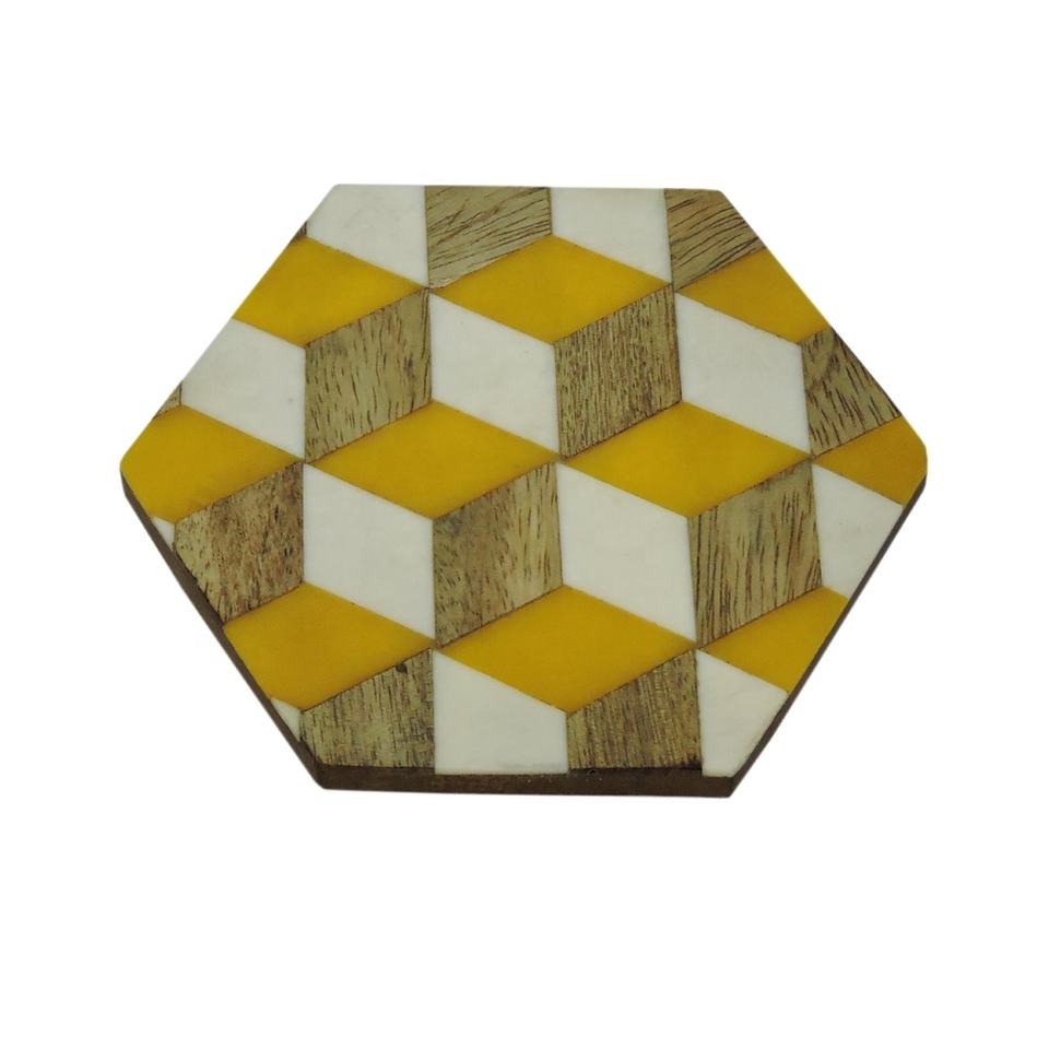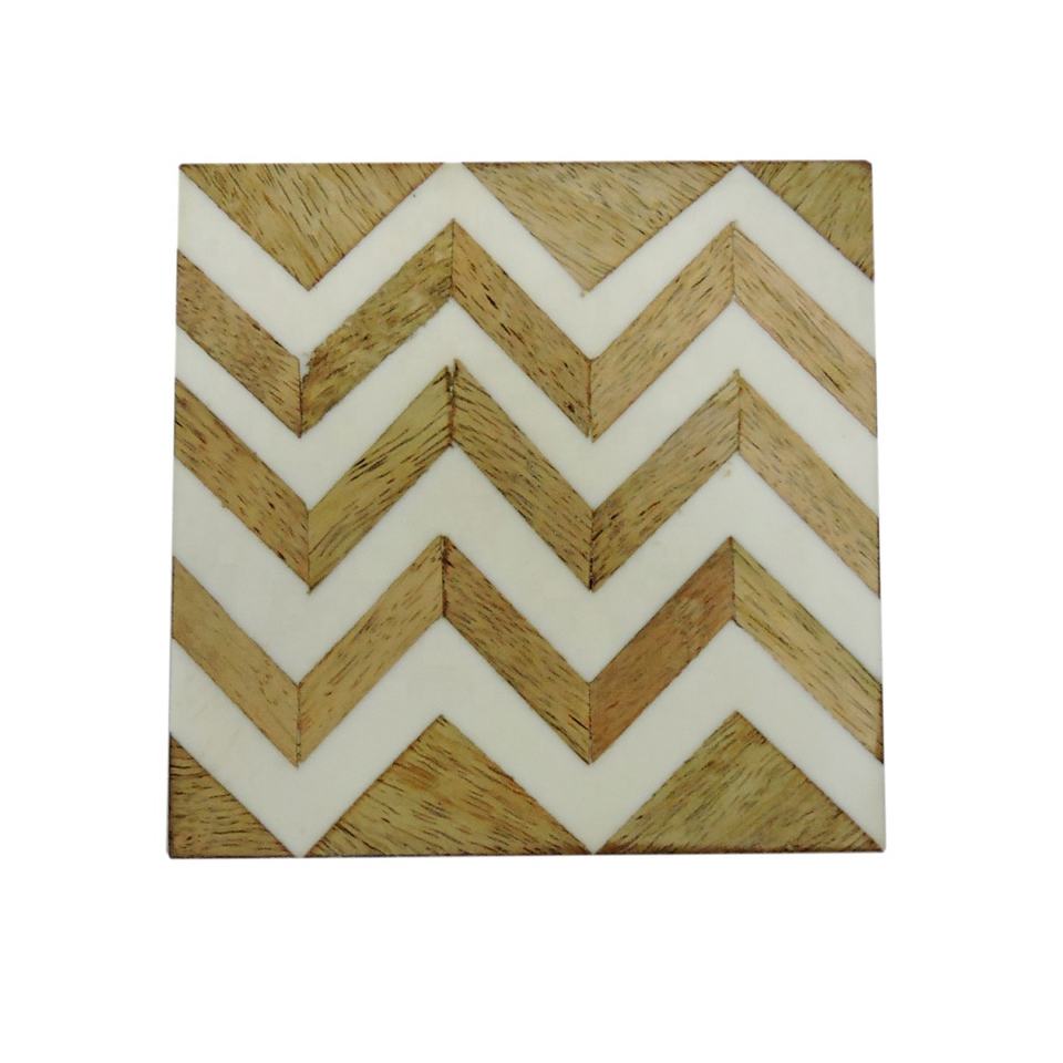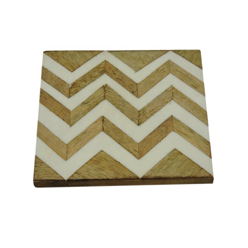 Posavasos cuadrado de madera hecho a mano, juego de cuatro diseños de incrustaciones de hueso de estilo clásico en color madera de hueso natural para artículos para el hogar