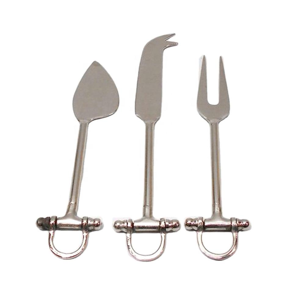 Juego de vajilla hecho a mano de acero inoxidable Diseño único en forma de U Tablero de queso plateado Diseño diferente Mango hecho a mano de metal