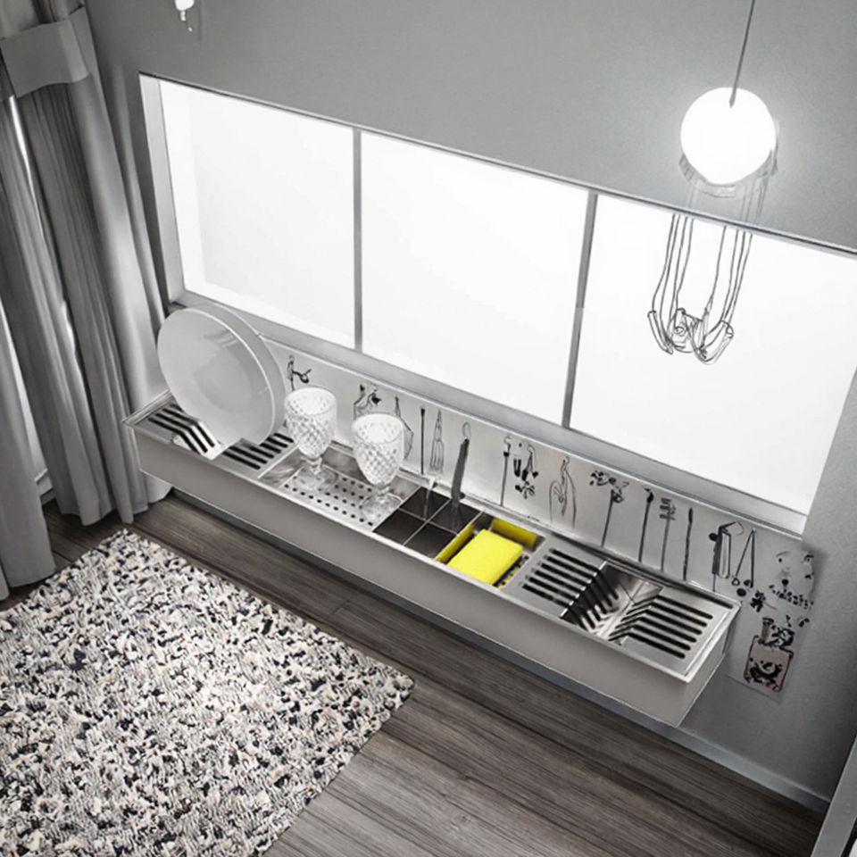 Escurreplatos artesanal de acero inoxidable para encimera de cocina, secador grande para platos, porta utensilios, bandeja de drenaje, para fregadero de un seno cuatro