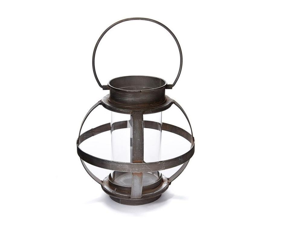 Farol de Metal y Vidrio Clásico, Portátil y Duradero, Hecho a Mano en Acero Inoxidable, con Acabado Negro, Forma Redonda, para el Hogar