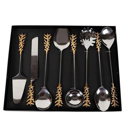 Juego de servidor de ensalada de acero inoxidable hecho a mano, juego de 6 piezas, diseño de mango elegante pulido con espejo plateado a precios asequibles